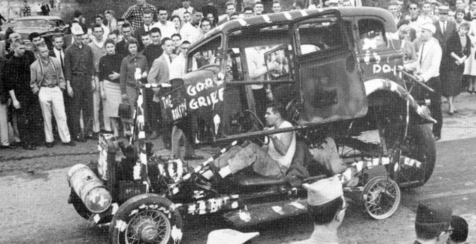 このパレードは、ホームカミングの試合で毎回行われることになっており、3種類の車が登場します。1つ目は、よくあるクラシックカーで、2つ目は修理された車体の車、3つ目はかなり変わった車です。この3種類目の車は、学生によって完全に改造されたもので、エンジニアの能力と創造性が試され、毎回どのような面白い改造車が現れるのかと、注目の的となっているそうです。